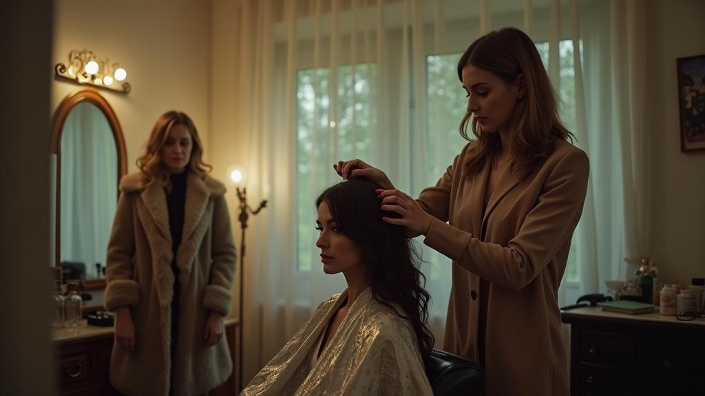 Вратата на салона се разтвори рязко и впусна декемврийския студ и жена в разкошно норково палто.
