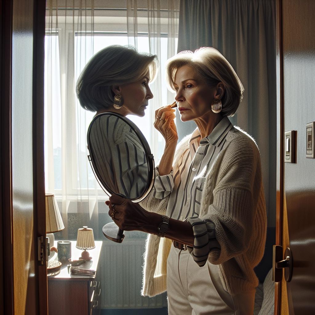 По пътя към майка си трябваше да мине през магазина. Даниела остави торбата с боклука до вратата, приближи се до огледалото и леко освежи грима си. За жена над шейсет изглеждаше много добре: леки „пачи крак“, миловидно лице, къса прическа със светлопепеляви коси, големи обеци. Бузите — съвсем леко отпуснати.