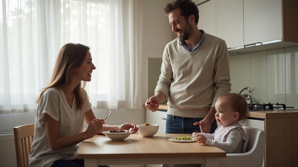 Лъжицата се изплъзна от ръцете на Венета и с глух звук тупна в недоядената каша на дъщеря им. Момиченцето реагира мигновено: устните ѝ се изкривиха, веждите се сближиха, и от гърлото ѝ се изтръгна сърдито сумтене. Венета, без да откъсва поглед от съпруга си, посегна към салфетката, за да избърше кашата от брадичката на детето.