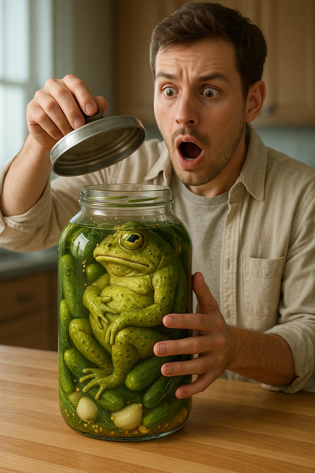 Марк поставил буркана на масата, взел отварачката и с леко щракване свалил капака. В този момент го лъхнал познатият аромат на саламура и копър. Но когато погледнал вътре, замръзнал. Между краставичките, наполовина скрита в мътната течност, се виждала тъмнозелена форма. Първо си помислил, че това е просто зле обелена краставица. Но когато се вгледал по-внимателно, разбрал — това не е зеленчук.
