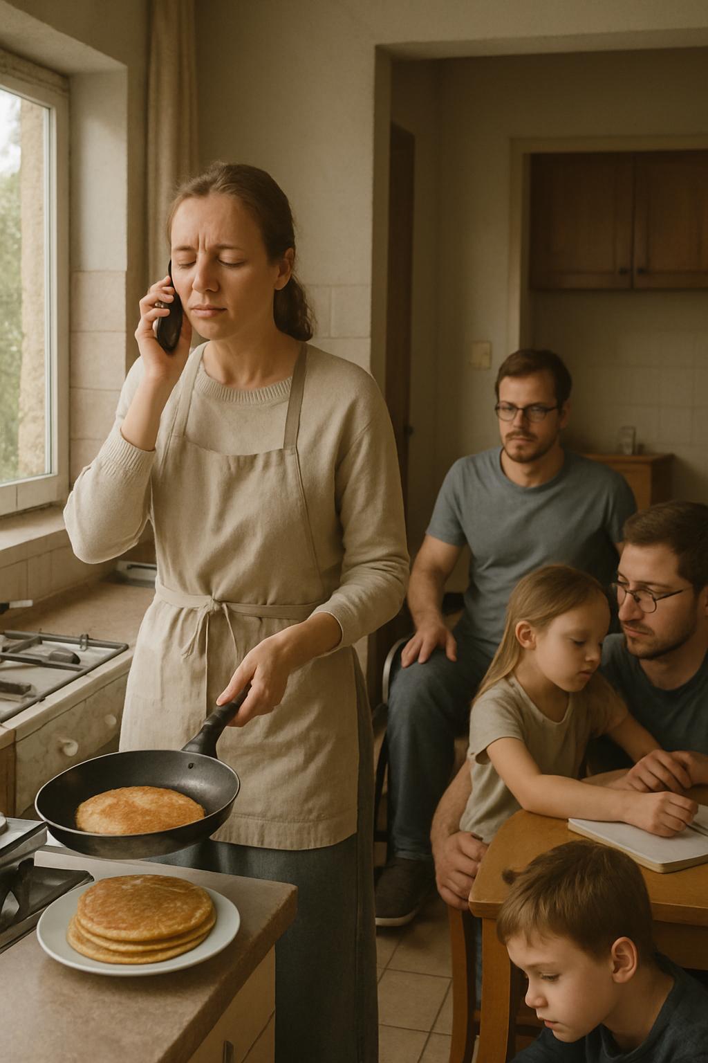 Ива потрепери и стисна по-силно телефона. Обаждането от Светлана прекъсна сутрешната суматоха — тъкмо обръщаше палачинки в тигана, докато Горан и Полина оживено спореха на масата.